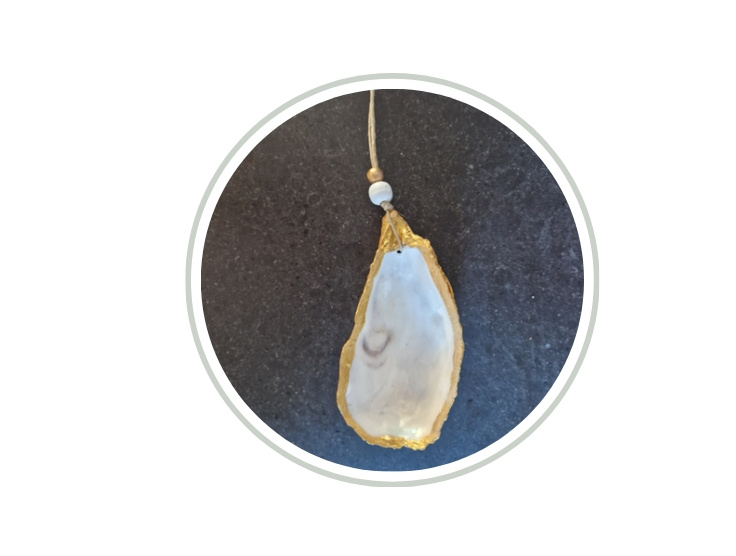 OverzichtLosse oesterhanger naturel, afmeting 10 cm lang x 5 cm breed.
