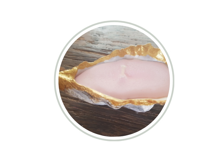Oester met roze kaars. Deze geurt heerlijk naar winterorchidee.