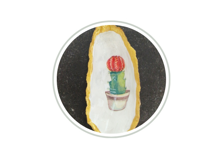OverzichtLosse oester met afbeelding cactus lang. Deze oester is 10,5 cm lang en 4,5 cm breed
