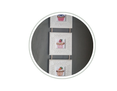 Drieluik geborduurde cupcakesDrieluik met geborduurde cupcakes.