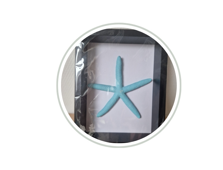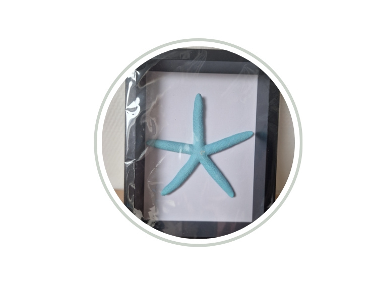 Zwarte lijst 14 x 19 cm met turquoise zeester NIEUW!!Zwarte lijst 14 x 19 cm met turquoise zeester in Ibiza stijl.